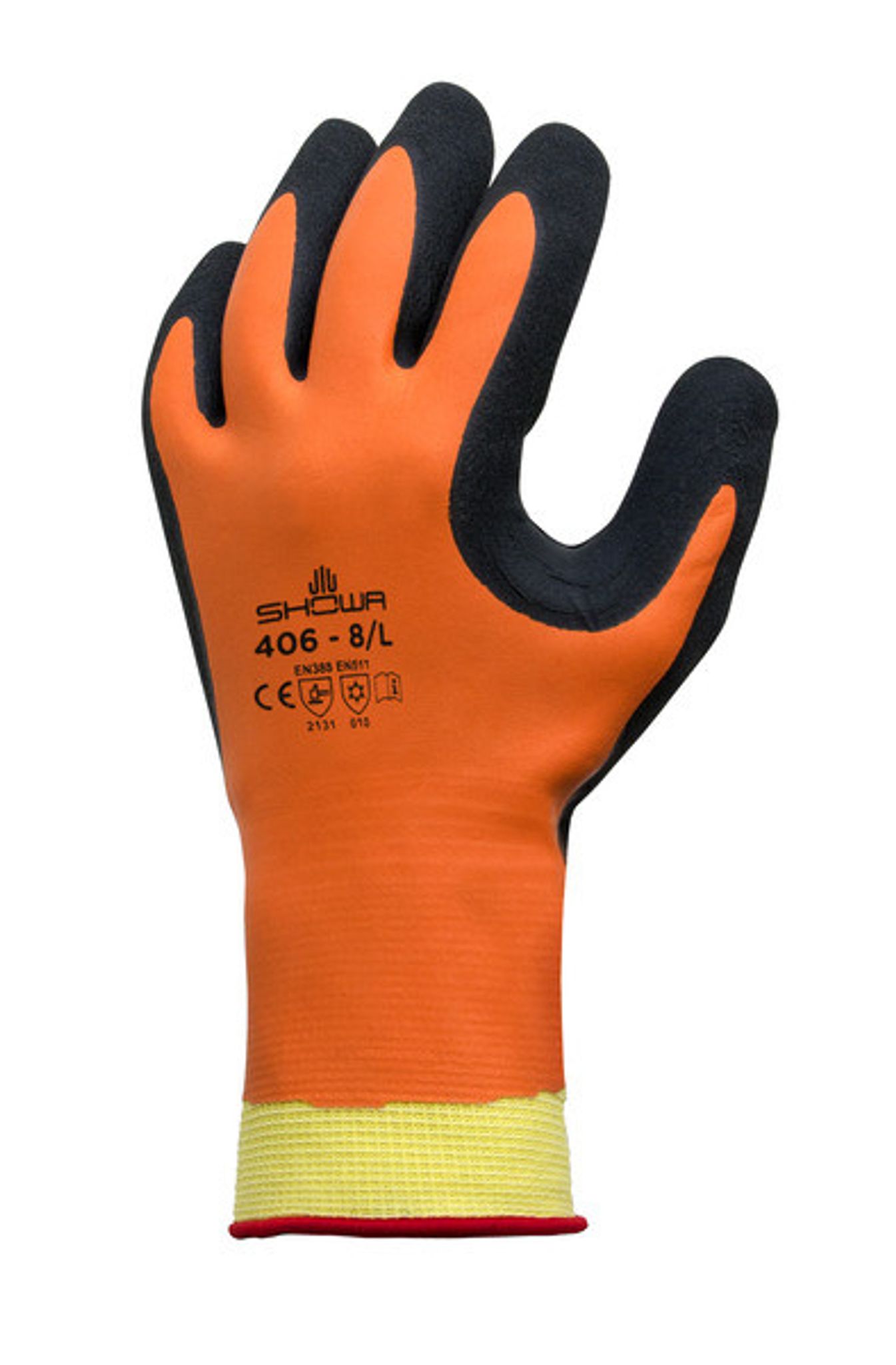 Showa 406 är den perfekta handsken för allmänna arbeten i kalla miljöer. Den dubbla latexbeläggningen gör handsken vattentät. Det yttre fodret är sömlöst för minskad hudirritation under upprepad på- och avtagning. Den vattentäta ytan kombinerat med det isolerande fodret med god andningsförmåga håller händerna varma och torra, vilket förbättrar produktiviteten och möjliggör längre arbetsperioder.