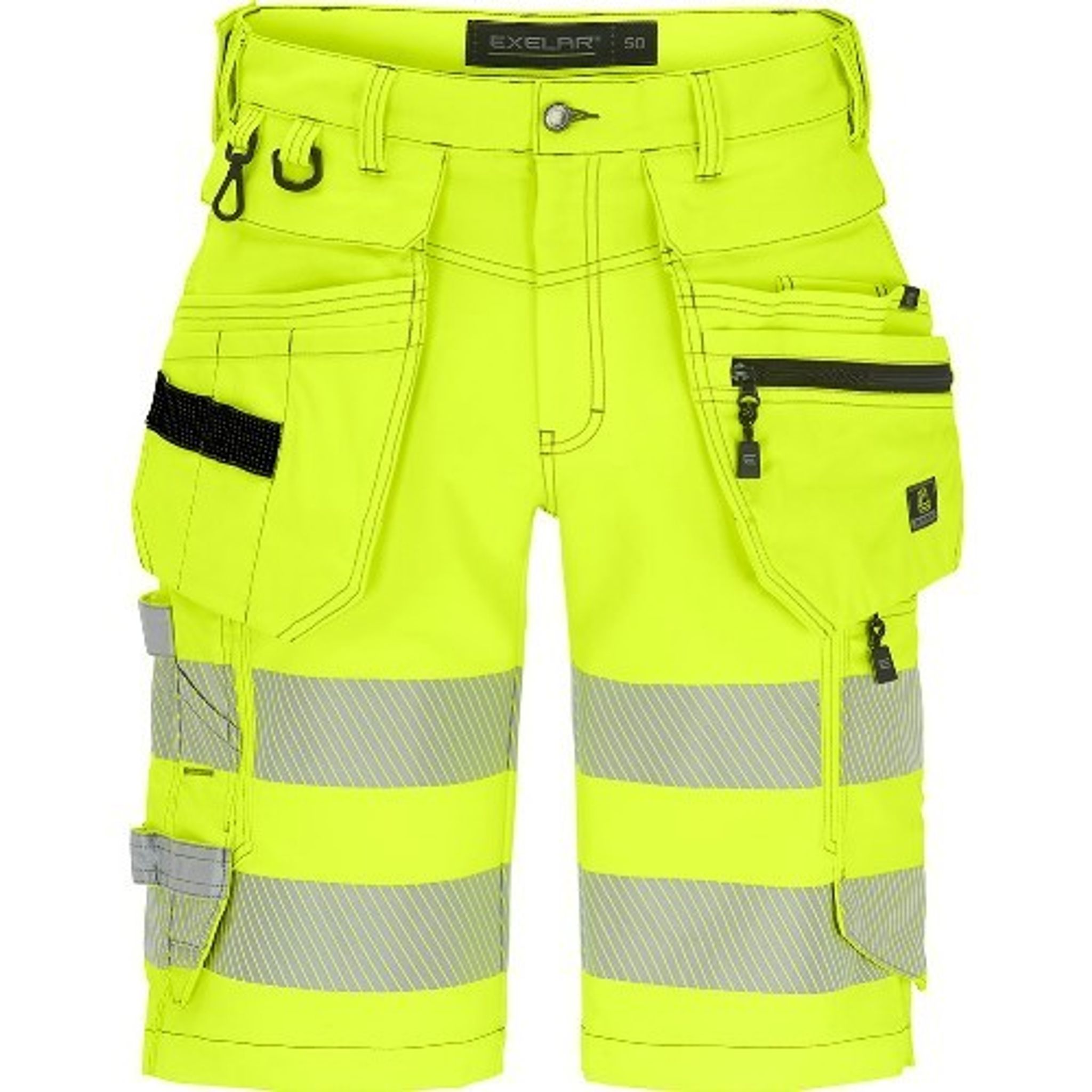 Exelar Kvarken 6011 är slitstarka och bekväma hantverksshorts i herrmodell, tillverkade i fluorescerande fullstretchmaterial som ger optimal rörelsefrihet. De är utrustade med avtagbara, förstärkta verktygsfickor och genomtänkta detaljer som bitsficka, D-ring, karbinhake och dold ID-kortsficka. Reflexdetaljer och certifiering enligt EN ISO 20471 gör dem till ett säkert och smart val för dig som arbetar i varselmiljö.