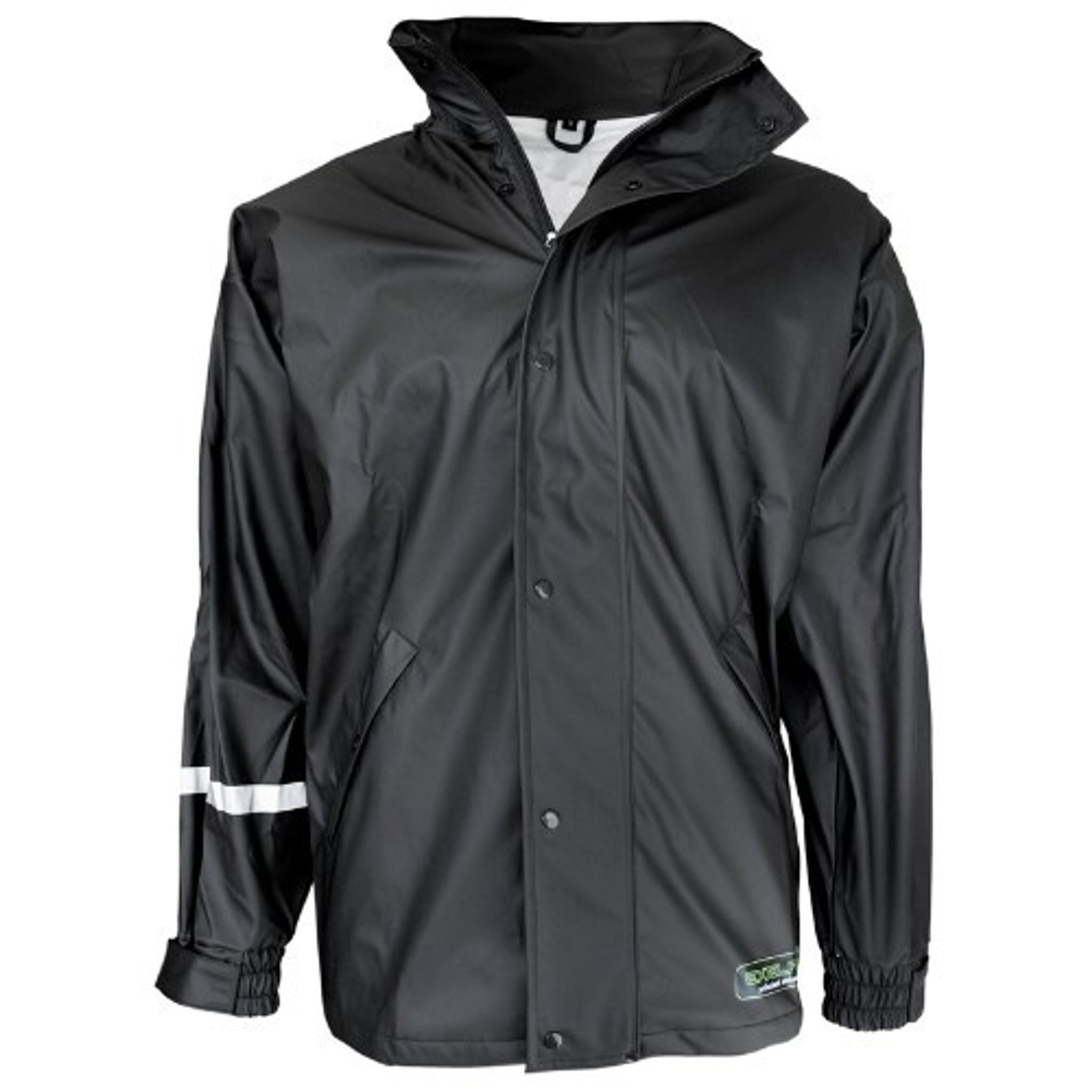 Exelar EL580 är ett funktionellt regnställ i herrmodell, bestående av både jacka och byxa. Tillverkat i slitstark PU med 5000 mm vattenpelare skyddar det effektivt mot regn. Jackan har ventilerat rygg-ok, reflexdetalj och instoppningsbar huva, medan byxan har resår i midjan och justerbara benslut. Perfekt för dig som arbetar utomhus i blöta förhållanden och behöver ett smidigt och vattentätt plaggset.